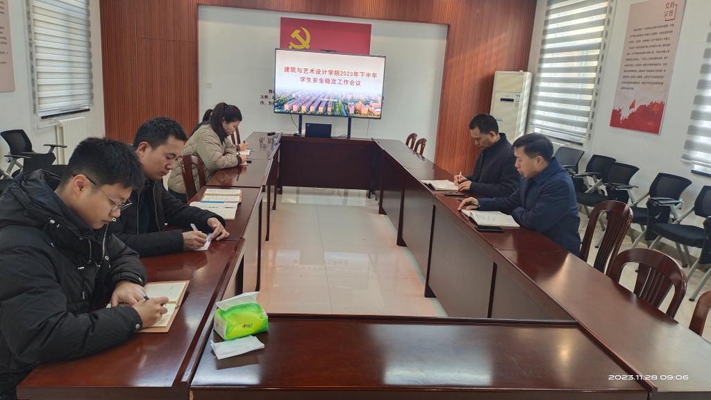 在党建会议室召开2023年下半年学生安全稳定工作会议,学院党委书记张建新以及全体专兼职辅导员参加了会议,会议由院党委副书记张明主持。