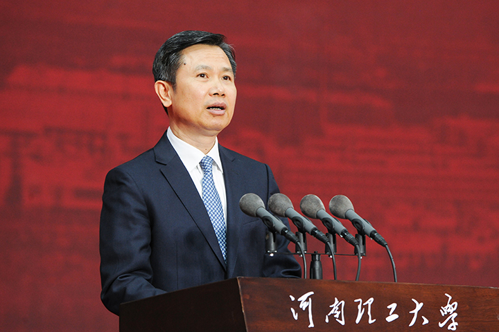 郑邦山在讲话中指出,学校艰苦奋斗,励精图治,各项事业实现跨越发展,不仅为河南高等教育改革发展探索了经验,也为国家特别是河南经济社会发展作出了突出贡献。希望学校更好担负起“为党育人、为国育才”的历史使命。一要办好中国特色社会主义大学。时刻牢记“为谁培养人、培养什么人、怎样培养人”这一根本问题,坚定不移走中国特色社会主义教育发展道路。二要深入落实立德树人根本任务。坚持“以本为本”,推进“四个回归”,着力提升学生的社会责任感、创新精神和实践能力。三要始终坚持创新发展。深化政产学研协同创新,着力强化一流意识,打造国内一流品牌。四要把服务经济社会发展作为根本使命。抢抓机遇、主动作为,不断提升服务行业和支撑经济社会高质量发展的能力。郑邦山表示,省委高校工委、省教育厅将一如既往地支持学校改革和发展,继续为学校各方面的工作做好服务,为学校发展建设加油助力。相信学校一定会不负众望,奋力谱写出新时代河南高等教育的壮丽篇章。
