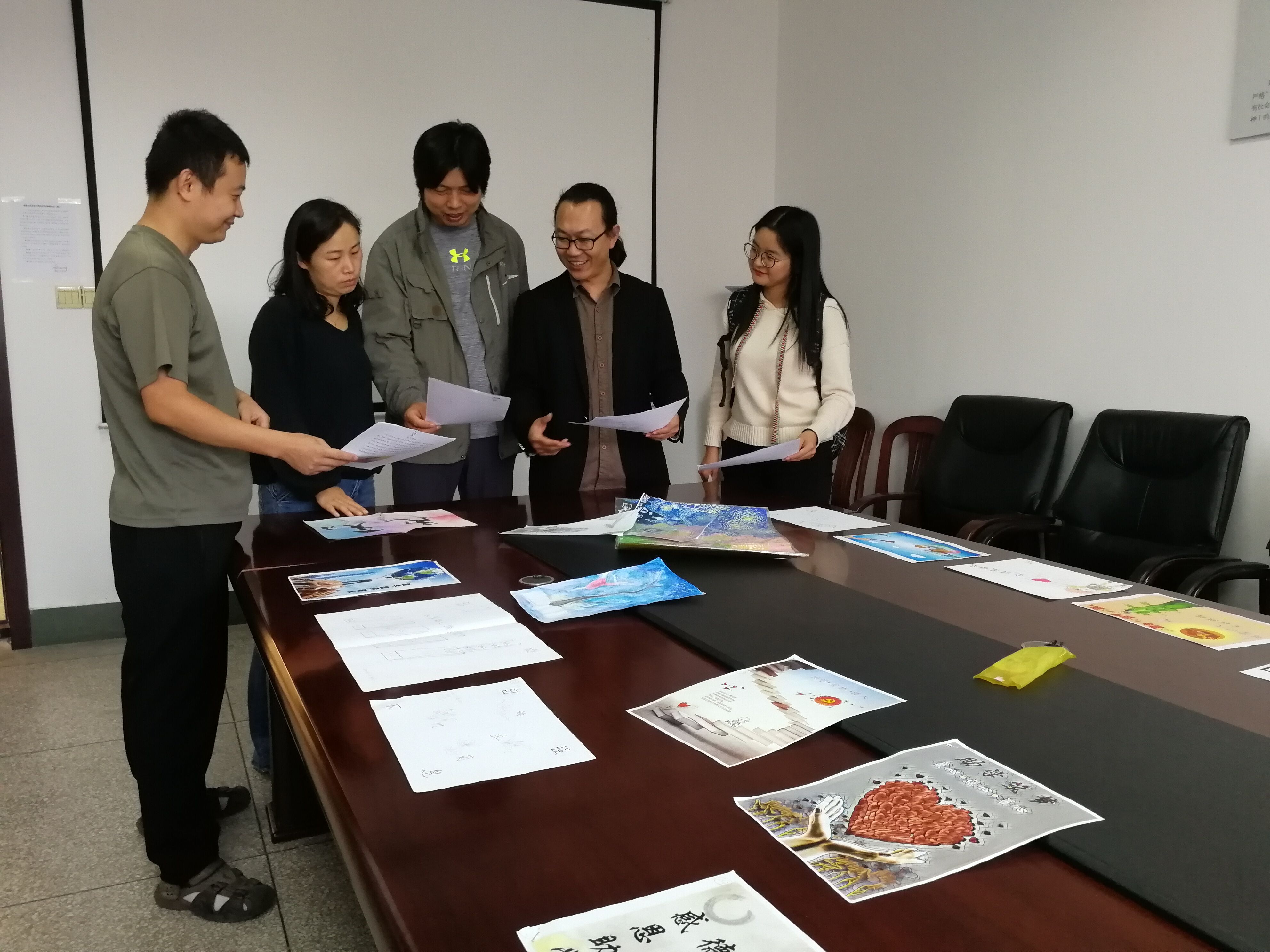 王爱军、崔晓、李广武等组成的专家团对全校征集的近百幅作品进行了评审。