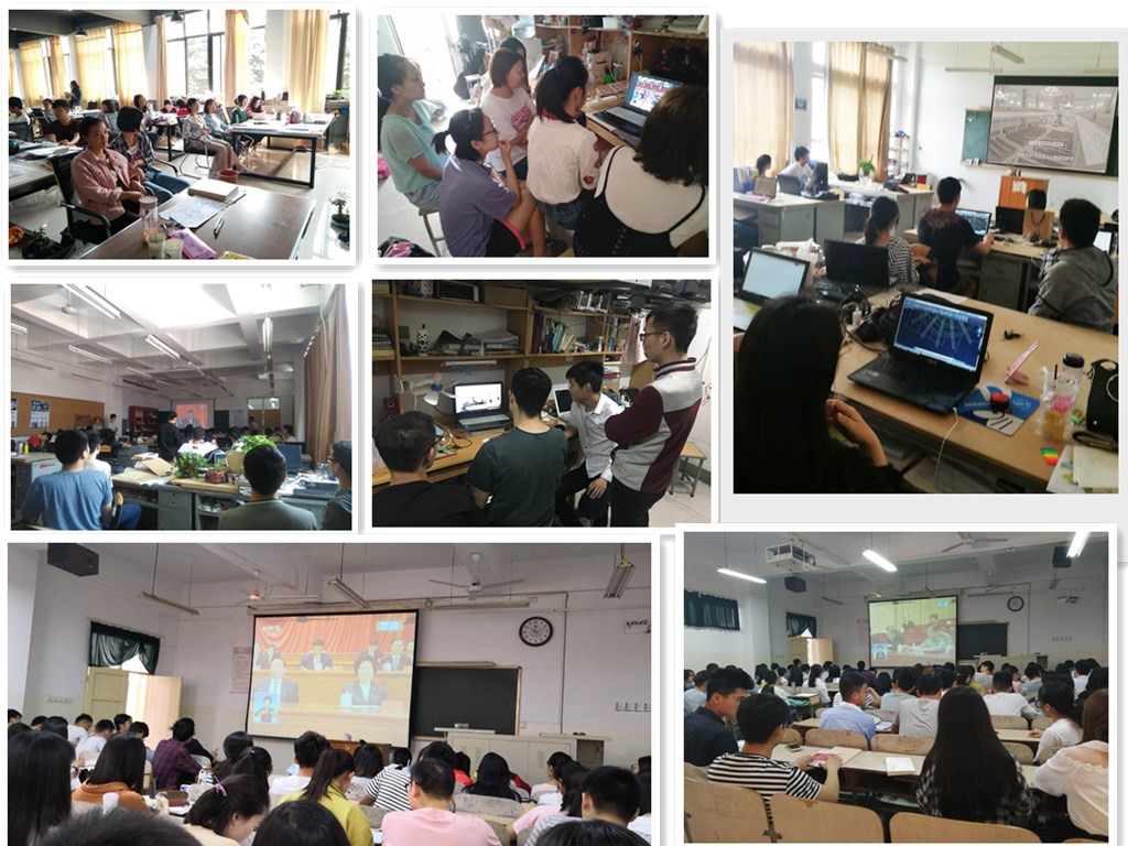 各年级学生在专业教室、学生宿舍等认真收看了大会直播盛况。