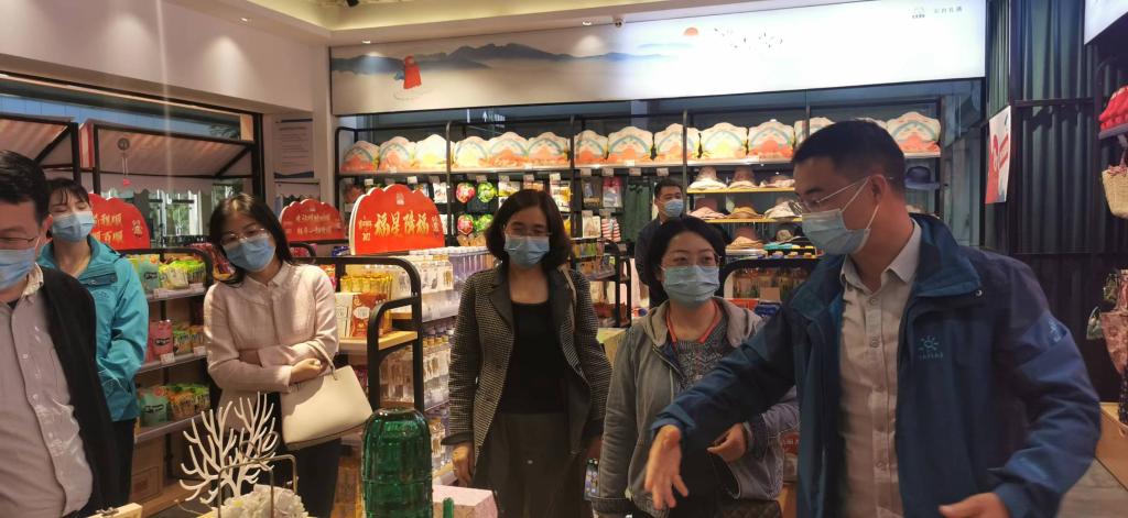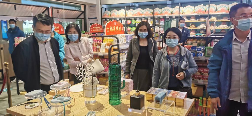 在交流会后,在黄黎明副局长的带领下,学院团队参观考察了云台山游客中心的文创产品商店和游客服务中心,对云台山文创产品的设计和创新提出了合理化建议,也对景区服务设施和服务体系进行了深入的了解。