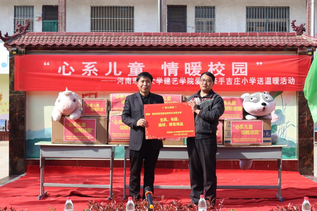 环境设计系教工党支部携手第一学生党支部开展“心系儿童,情暖校园”主题学雷锋活动。学院党委副书记张明、环境设计系党支部书记刘辉带领师生志愿者们在焦作市示范区苏家作乡吉庄小学顺利开展此次爱心支教活动。