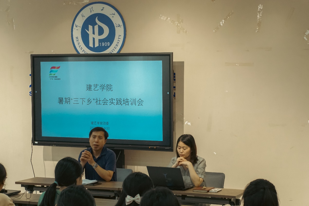 同学具有重要意义,学生应在实践中磨炼心性,将理论和实践相结合,积极承担社会责任。她鼓励学生们积极投身到农村建设中,助力打造美丽乡村新格局,并根据相关文件,指导同学们如何更好更全面地开展社会实践。随后,史淑珍向学生展示了往年建艺学子“三下乡”实践活动的所获奖项和优秀风采。最后,院党委副书记张明向同学们表达了期望和鼓舞,并对学生提出了多点建议,希望学院暑期“三下乡”社会实践一切顺利。