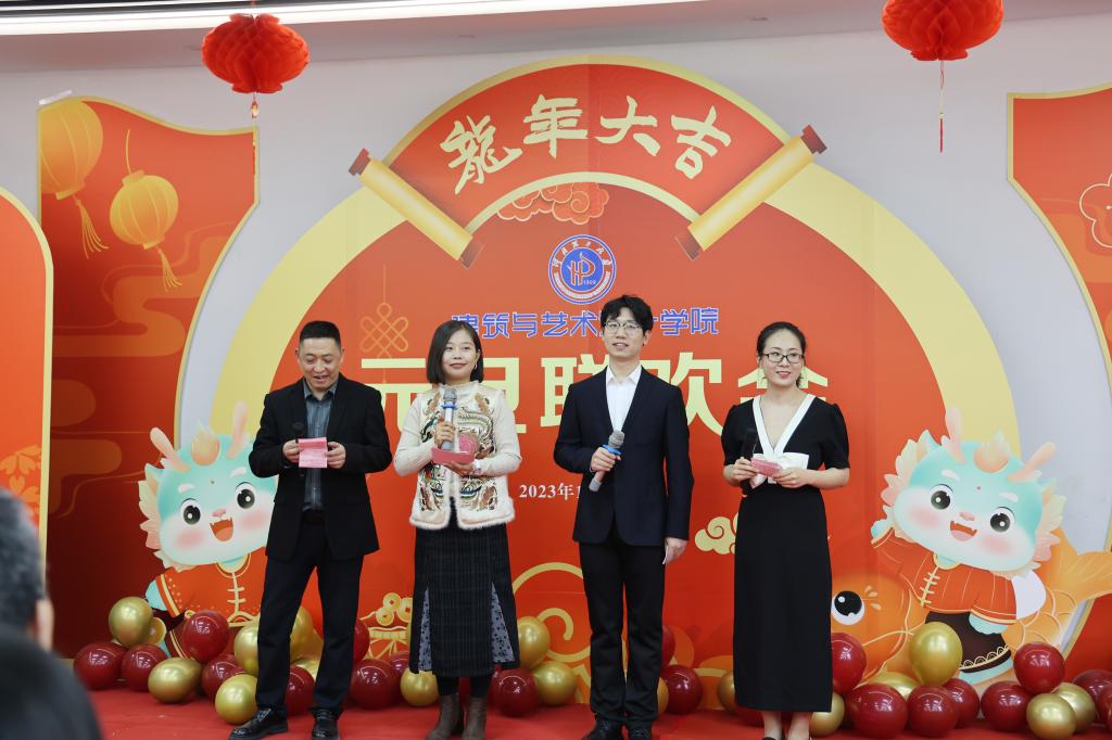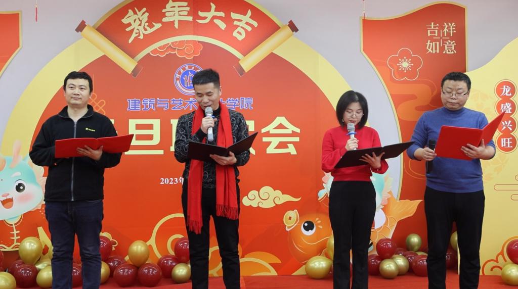 工会举办教职工元旦联欢会,院党委书记张建新、院长王同文、院党委副书记张明、副院长韩宏斌、副院长何艳冰与学院全体教师欢聚一堂,共迎新年。