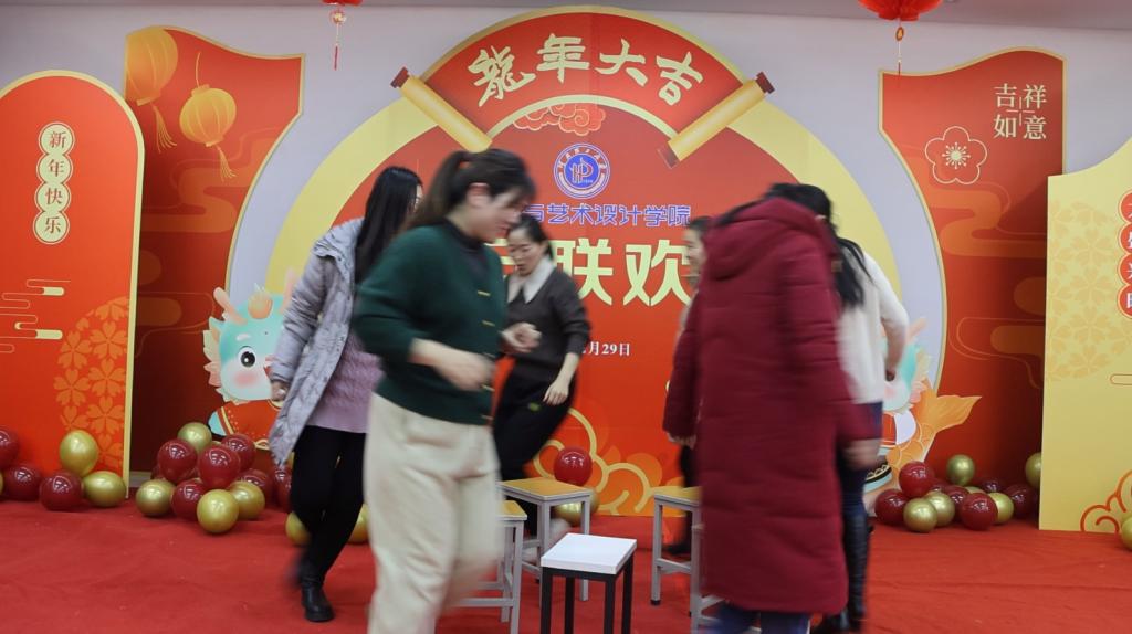 喜气洋洋的舞蹈拉开了元旦联欢会的序幕,多才多艺的老师们展示了独唱、乐器弹唱、街舞、朗诵等多种才艺。联欢会上不止有精彩的节目表演,更是有欢乐的游戏与抽奖环节。晚会设置了抢凳子、击鼓传花的游戏环节,现场一片欢声笑语。