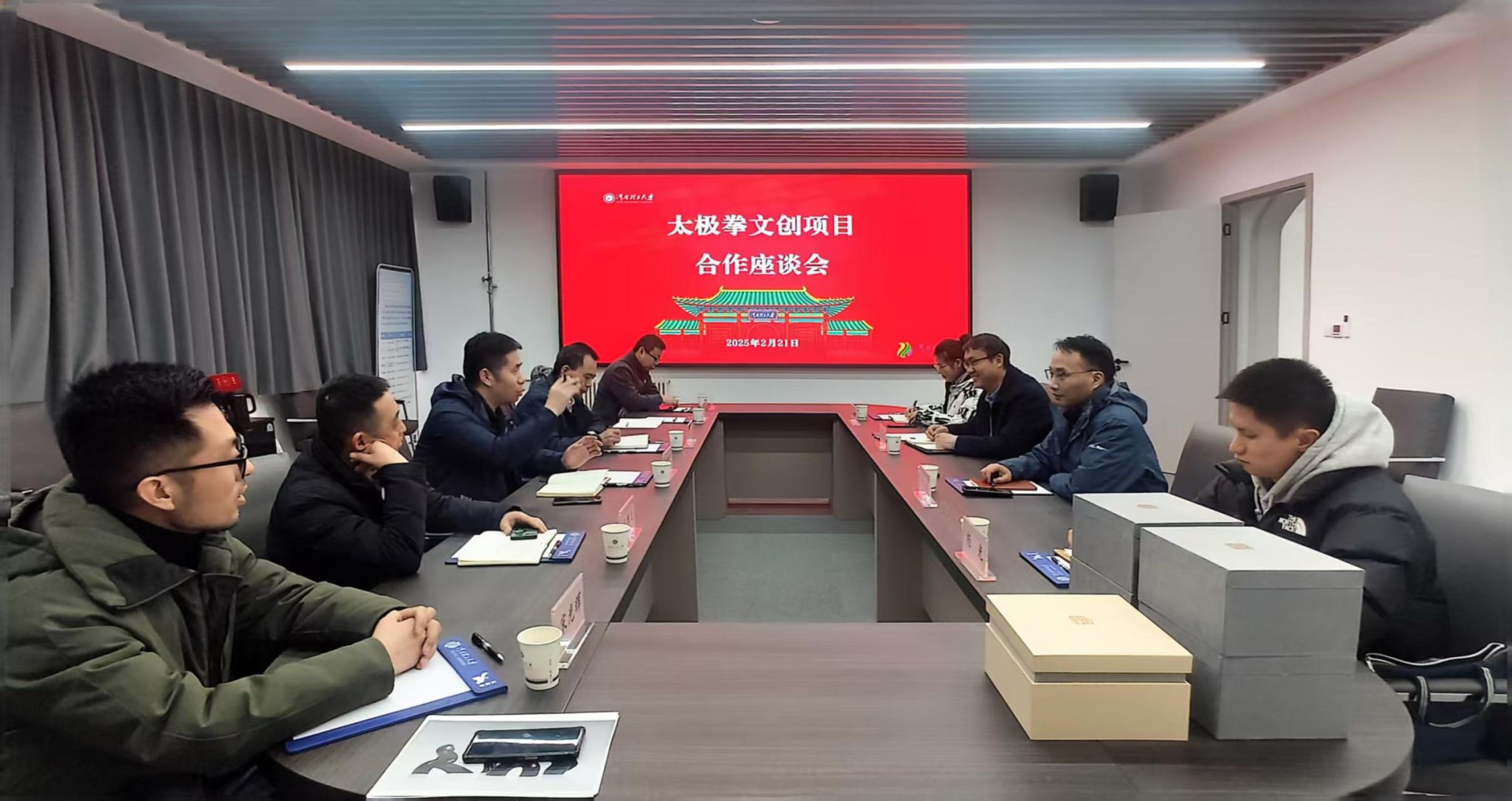 双方就太极文创设计的文化价值、当代内涵、美学表达等方面进行了深入交流,表示太极文创设计是太极文化传承的重要载体,双方在美育与体育、太极文创产品开发、太极文创创新创业项目、太极拳人体热舒适研究等方面有着广阔的合作前景。