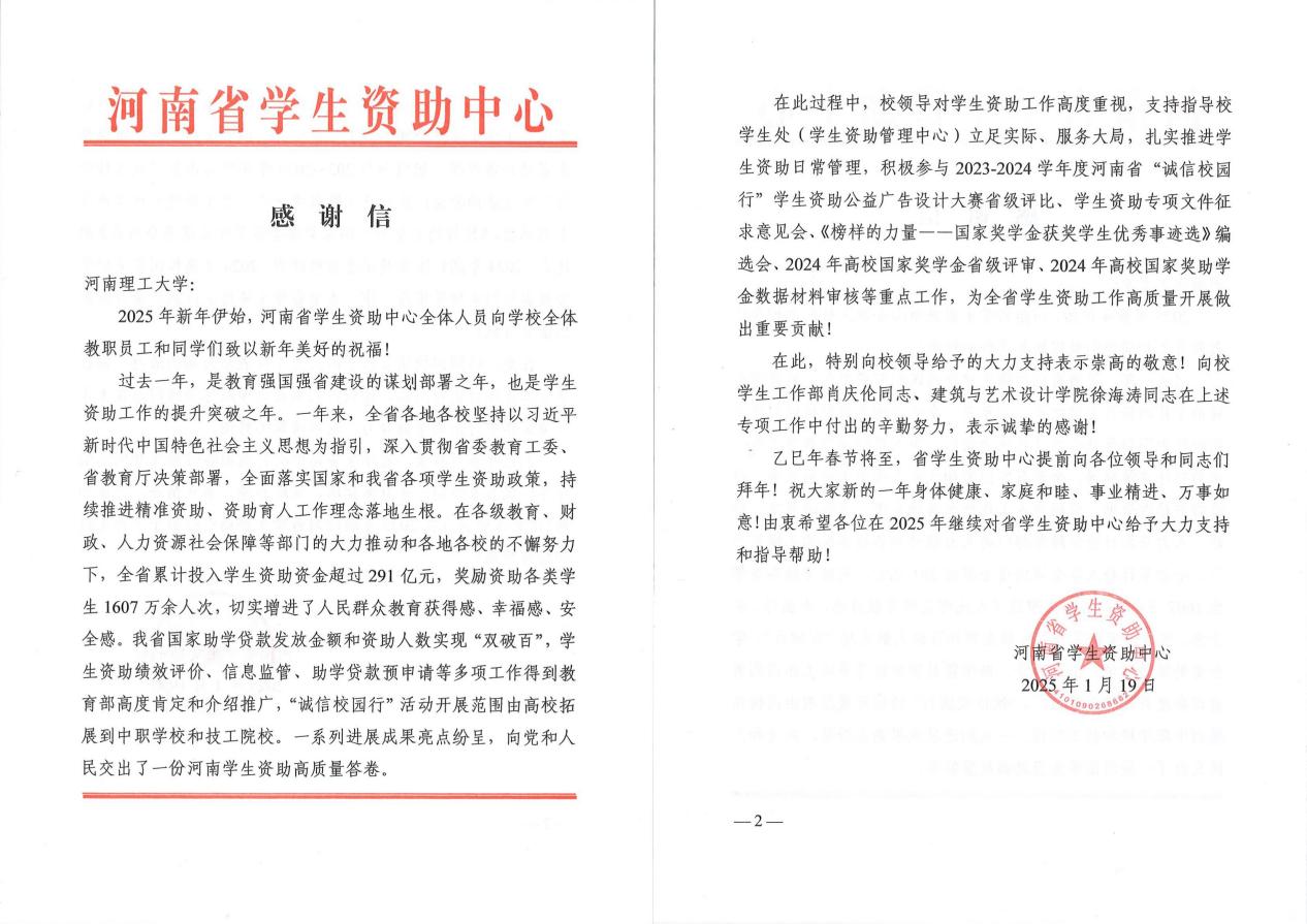 视觉传达系党支部书记徐海涛因在学生资助工作中表现突出,受到河南省学生资助中心的表扬。