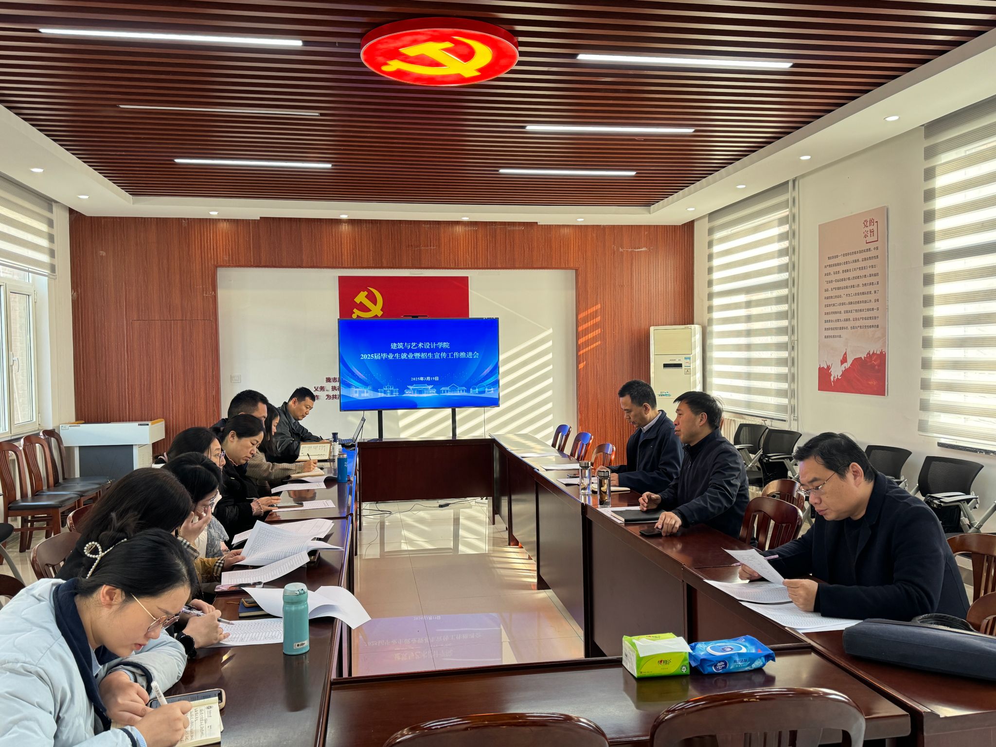 在党建会议室召开2025年招生就业工作推进会。院党委书记张建新、副书记张明,各系室主任、党支部书记、毕业生辅导员参加会议。
