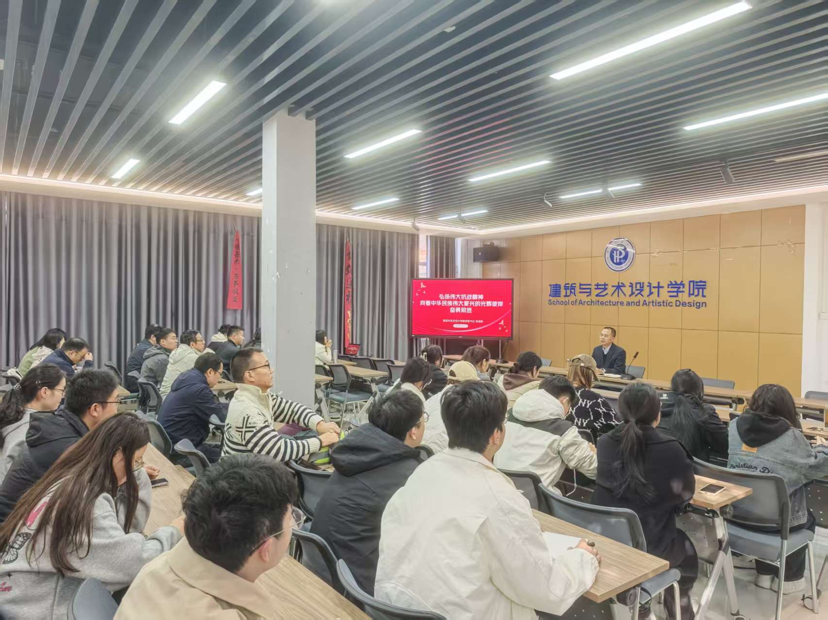 开展“弘扬伟大抗战精神 向着中华民族伟大复兴的光辉彼岸奋勇前进”主题党课,学院全体党员参加学习。