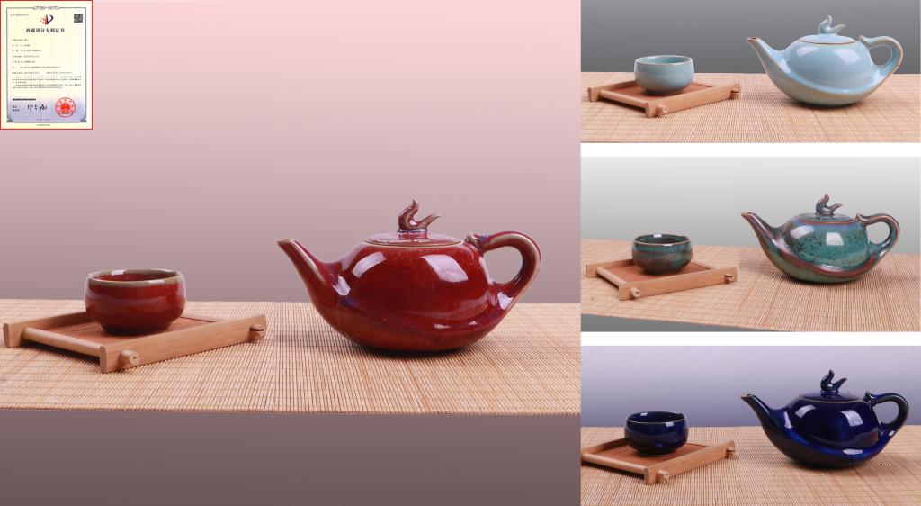 该壶选用钧瓷这一富有中原文化底蕴的陶瓷形式进行产品具象表达。钧瓷作为国家级重点非物质文化遗产,以其神奇的窑变艺术和深厚的文化积淀闻名于世,钧瓷茶壶作为中国瓷文化与茶文化相结合的产物,集聚中国传统文化之美,体现着中国文化特有的品味和情趣。该作品由wepoker官网