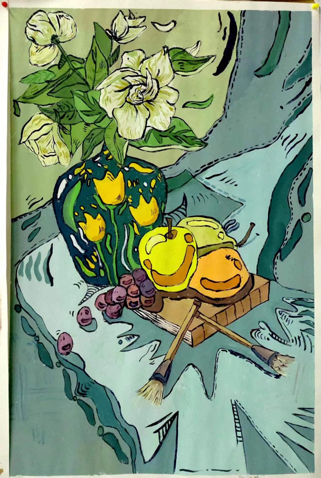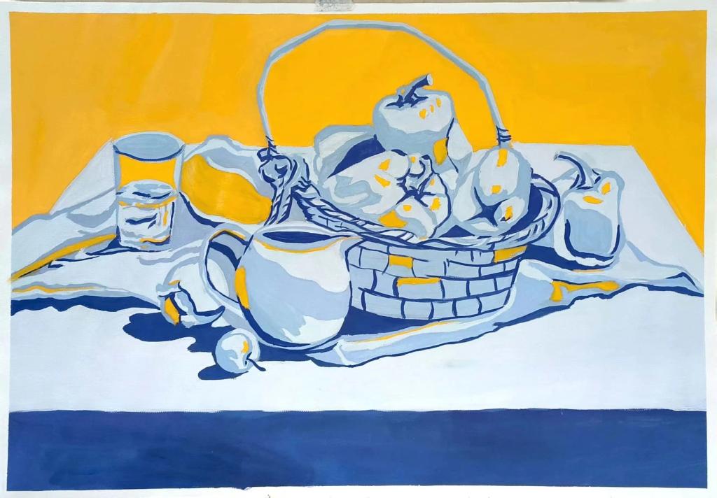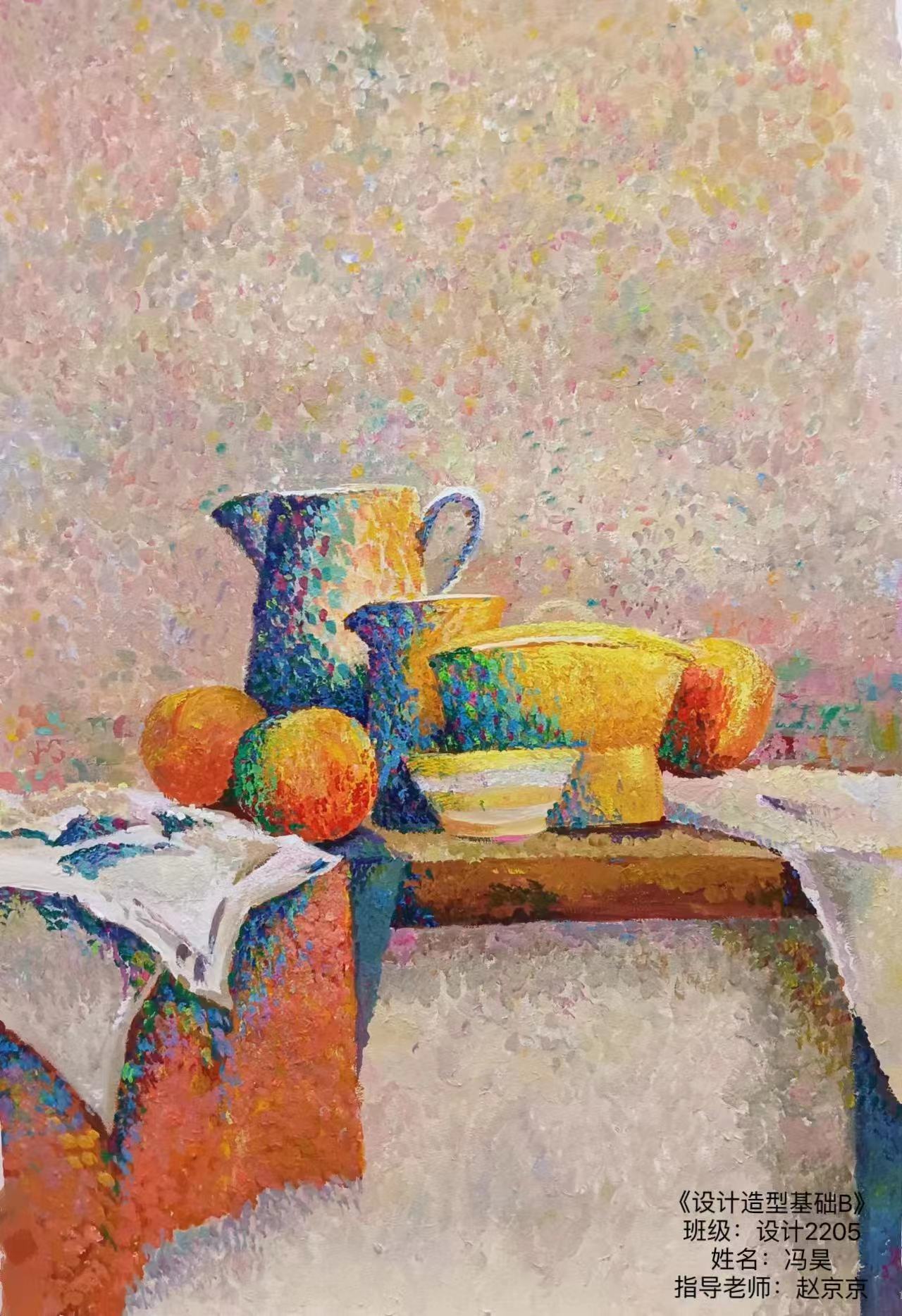 刘雪纯(设计类2206班):通过此次课程,培养了我们从只会观察物体表面到深入观察物体的思想转变,学会了将每副画带有自己的理解与感情融入画中。让我们对于色彩的表达更加灵活,多样。