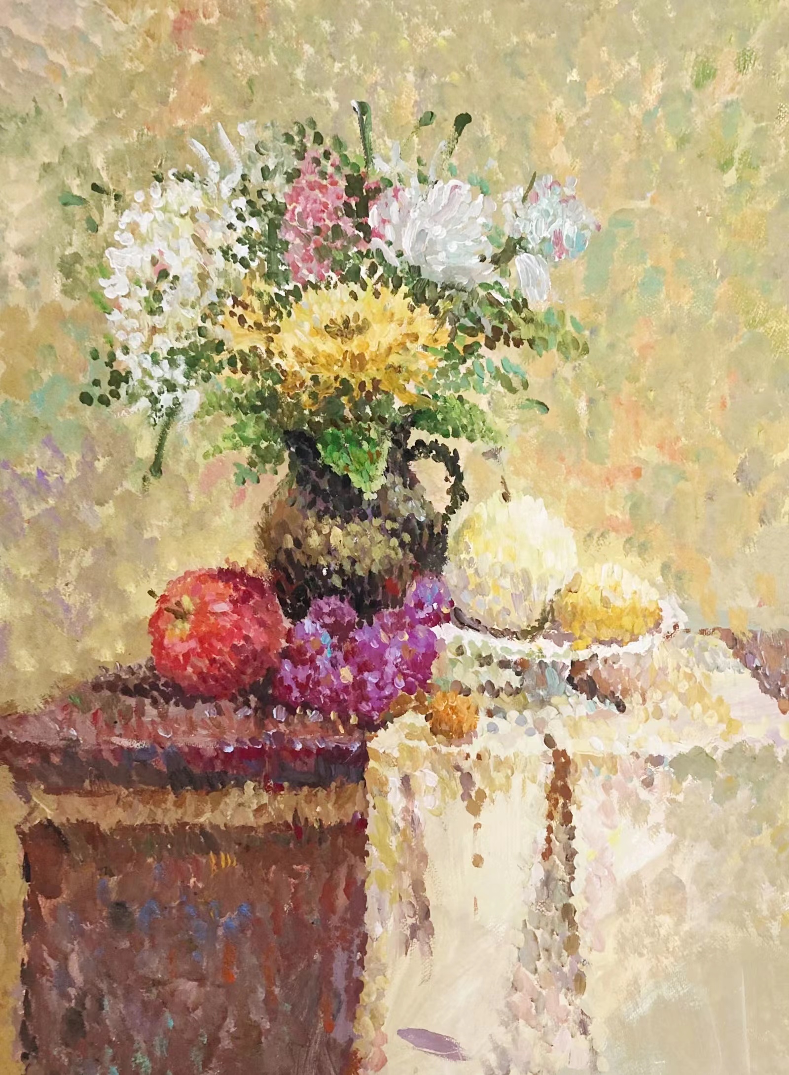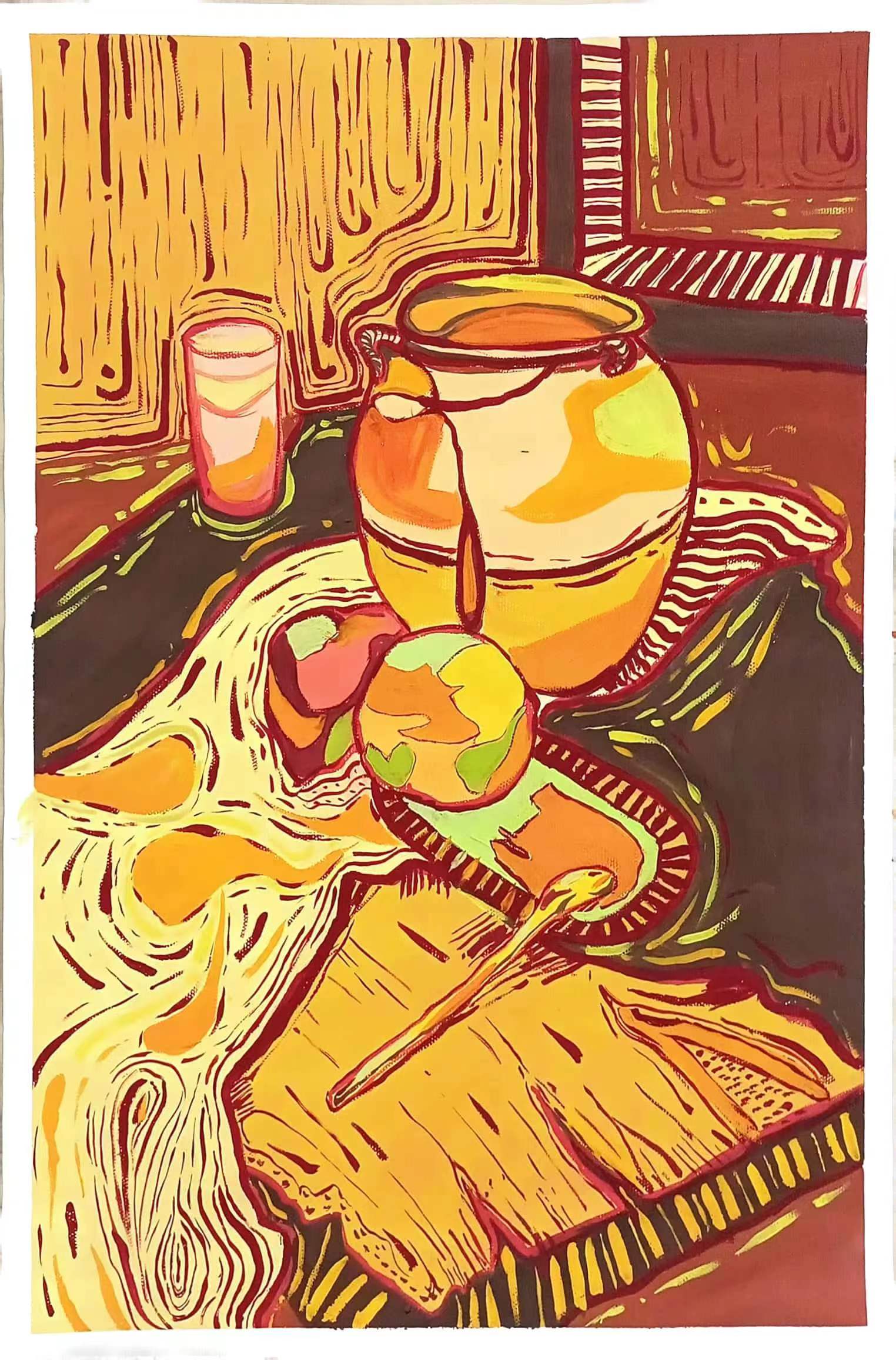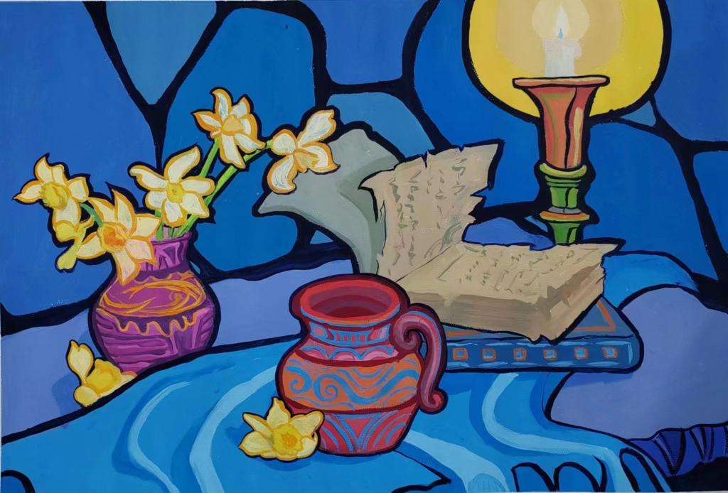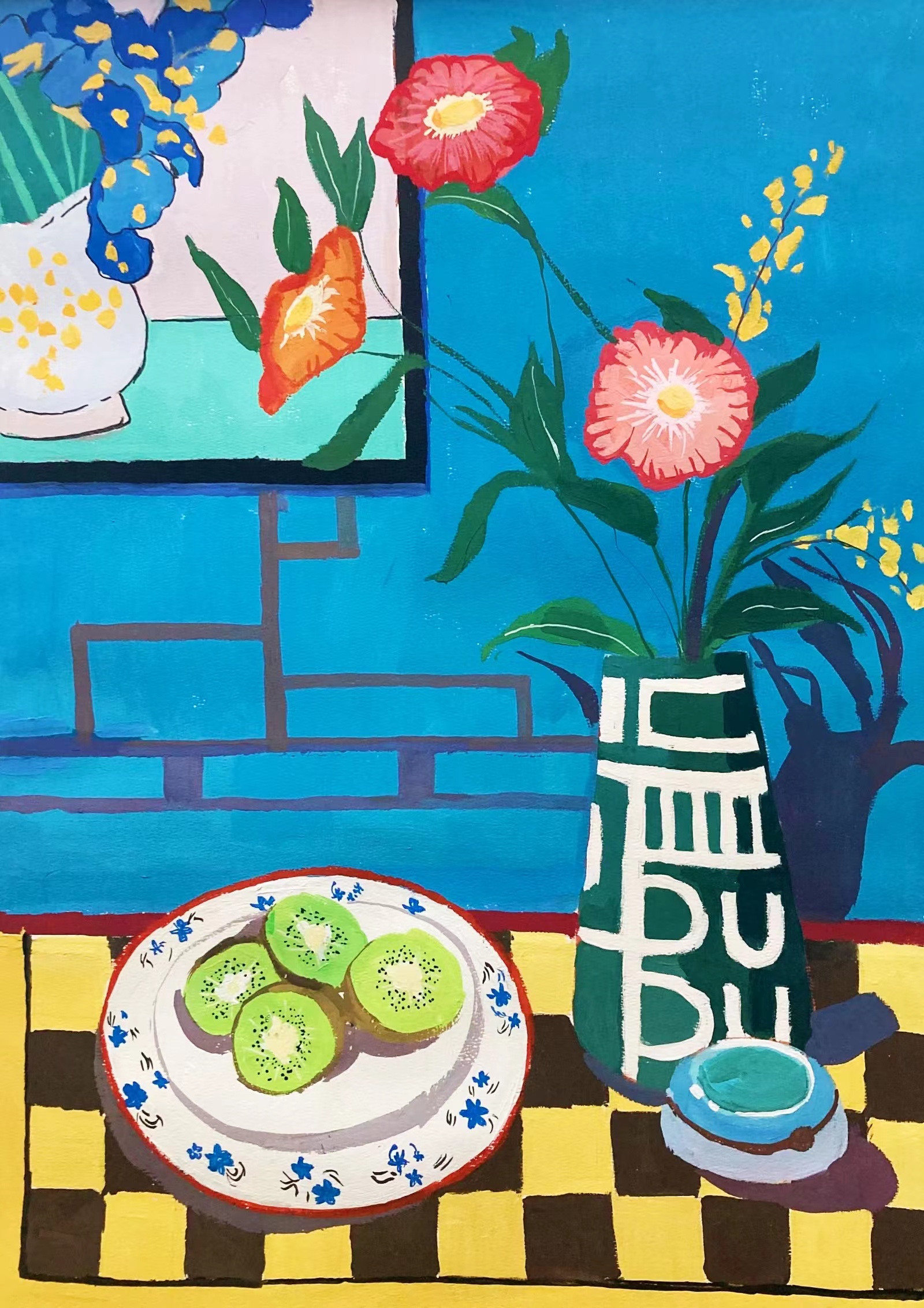 刘雪纯(设计类2206班):通过此次课程,培养了我们从只会观察物体表面到深入观察物体的思想转变,学会了将每副画带有自己的理解与感情融入画中。让我们对于色彩的表达更加灵活,多样。
