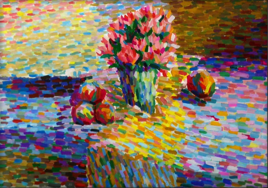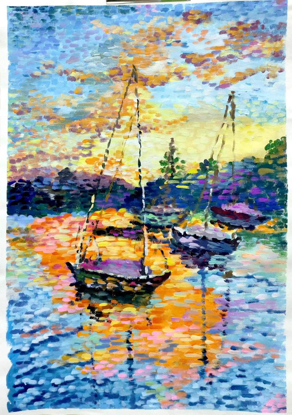 宋高洁(设计类2201):色彩是一门深奥的学问。来自生活的色彩灵感,浓妆淡抹总相宜,有温柔的色彩,有斑驳陆离的色彩情感,色彩线条下的情感。通过课程学习,加强了同学们对色彩的训练,不管是平面构成还是点彩,都让我们受益匪浅。