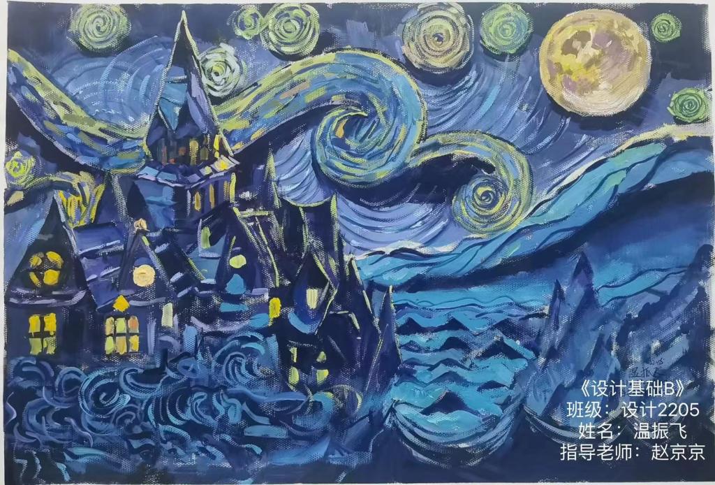 周阳(设计类2206班):色彩让我们产生心理情感与感受 配合心理层面 综合考量出不同的色彩带来的感触 用较抽象的表现主义 表达出作画者的心理感受 感染着个人与他人。