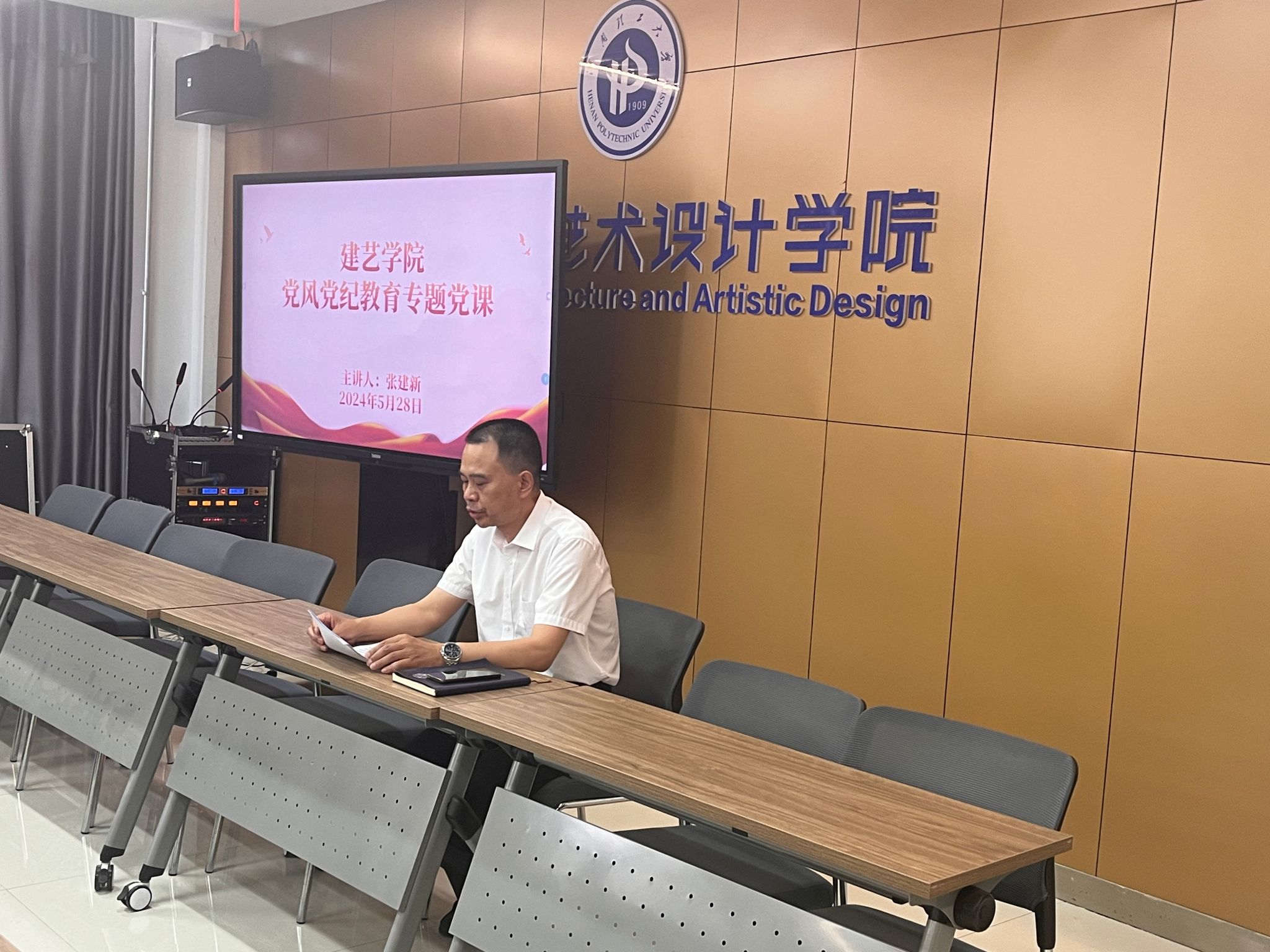 为深入学习领会新修订的《中国共产党纪律处分条例》,教育引导全体党员学纪、知纪、明纪、守纪,5月28日下午,学院党委书记张建新以“深入开展党纪学习教育 为学院事业高质量发展提供坚强纪律保障”为主题,为全体教工党员与学生党员代表讲授党风党纪教育专题党课。